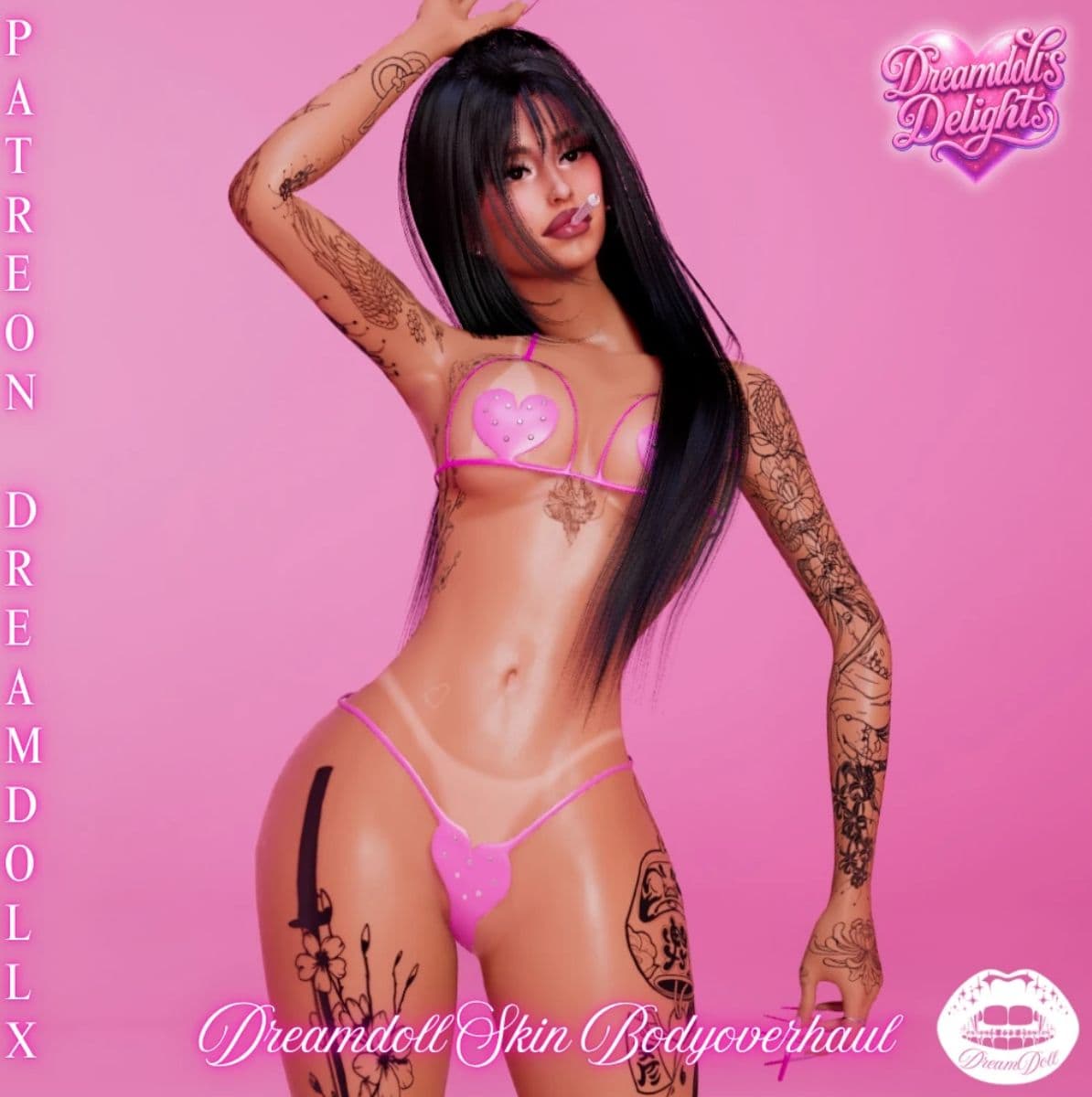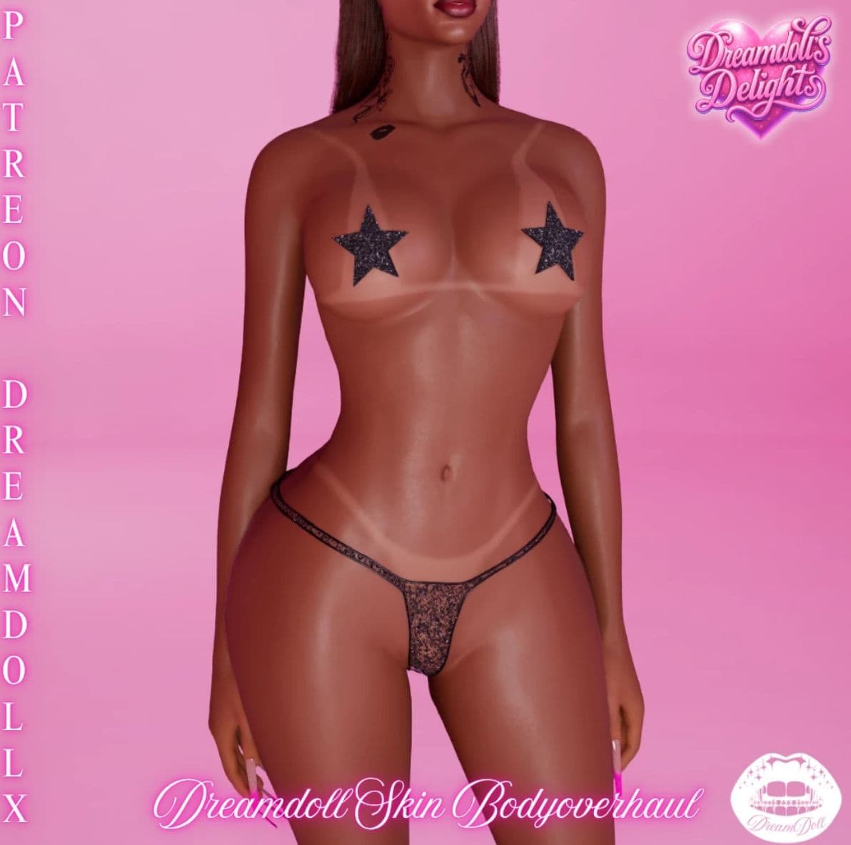 This mod removes the grey starting underwear and offers a nude skin made by me, Dreamdoll.