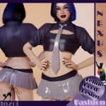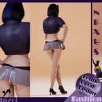 Partyoutfit with Ultra-miniskirt inspired by schooluniforms