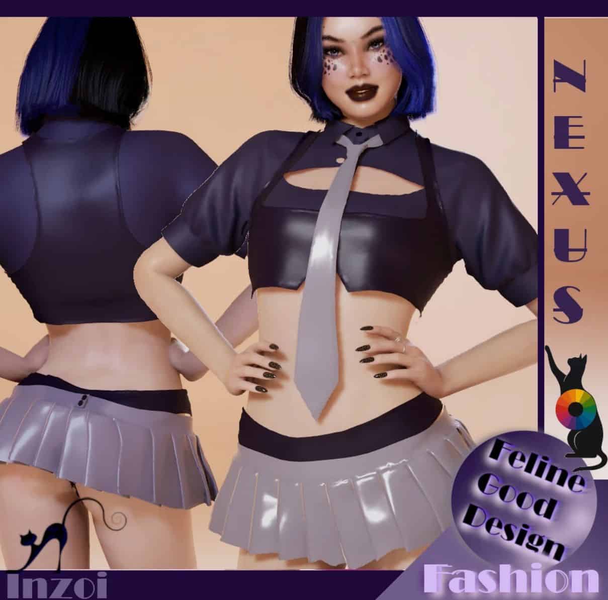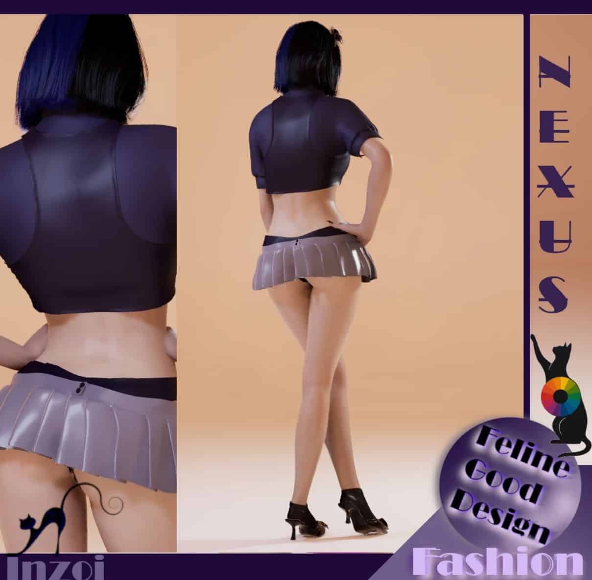 Partyoutfit with Ultra-miniskirt inspired by schooluniforms