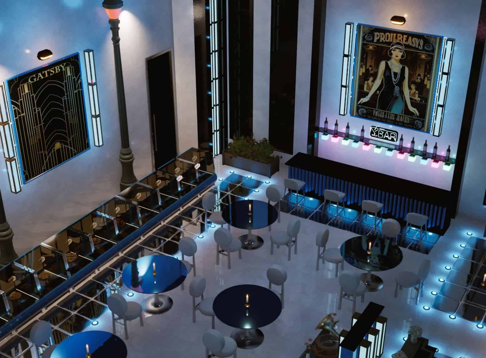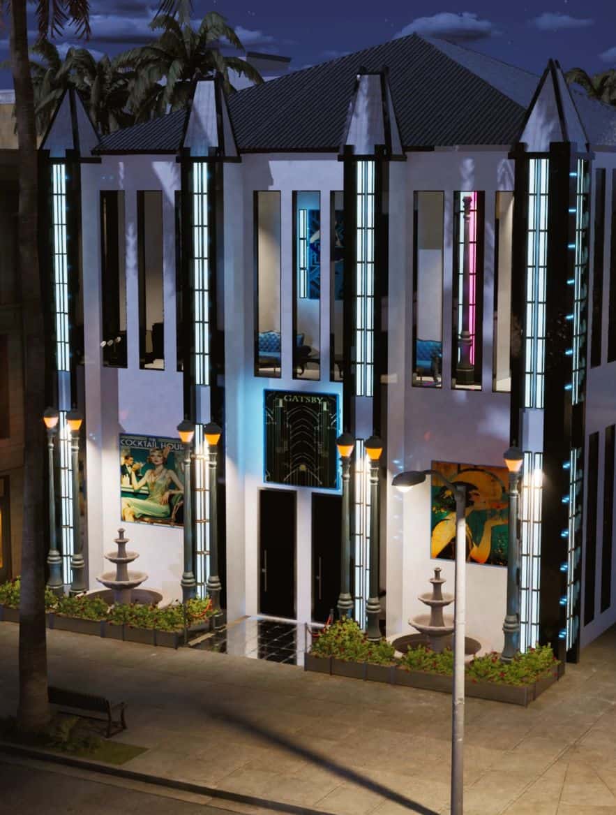 Inspired by 1920s Art Deco and High Society Speakeasys, the Gatsby Club offers a first-class dining experience at the 1st floor restaurant, and an exclusive 2nd floor nightclub. 20×15 lot size built at 915 Ocean Crest Ave in Bliss Bay.